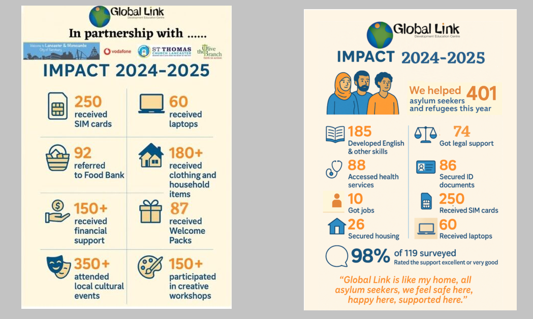 Our external consultant writes, ‘This simple survey has provided strong evidence that the ASR who participated are benefiting from Global Link’s services in the key ways intended (reducing isolation, learning skills, and becoming better able to get work), plus they highly rate the support that they receive.’
